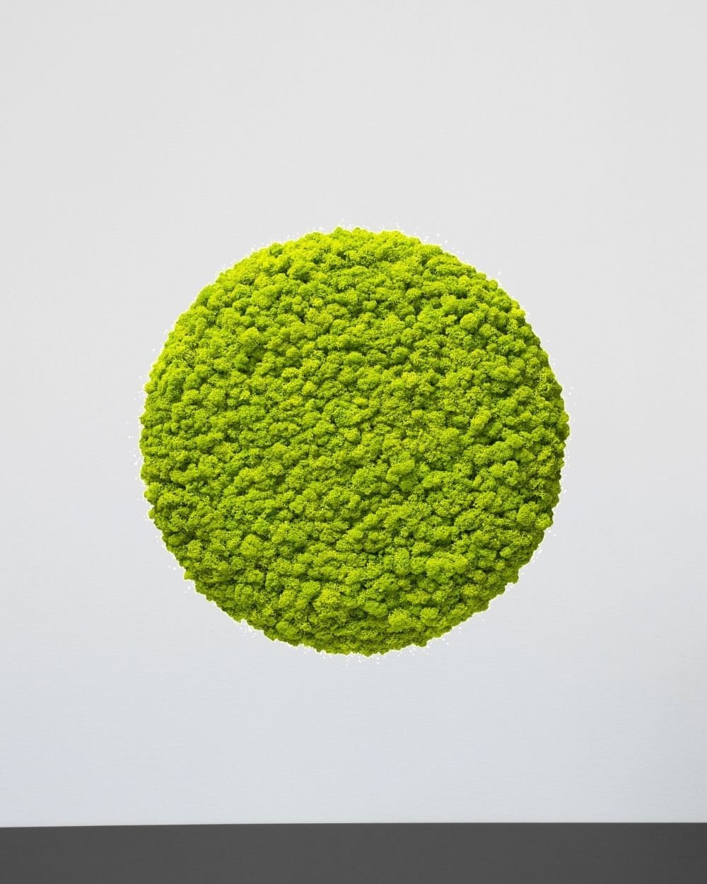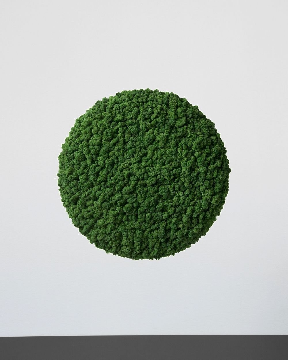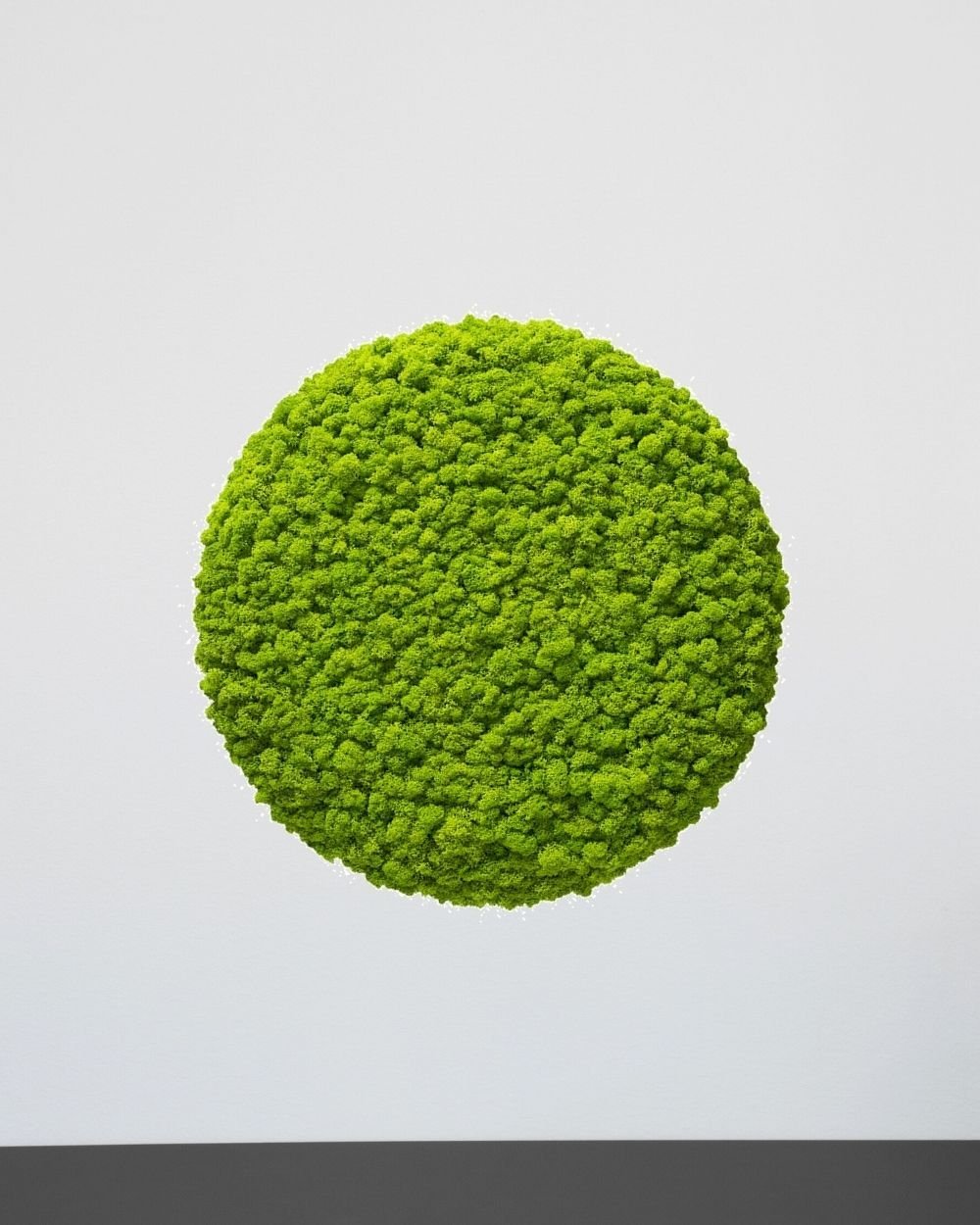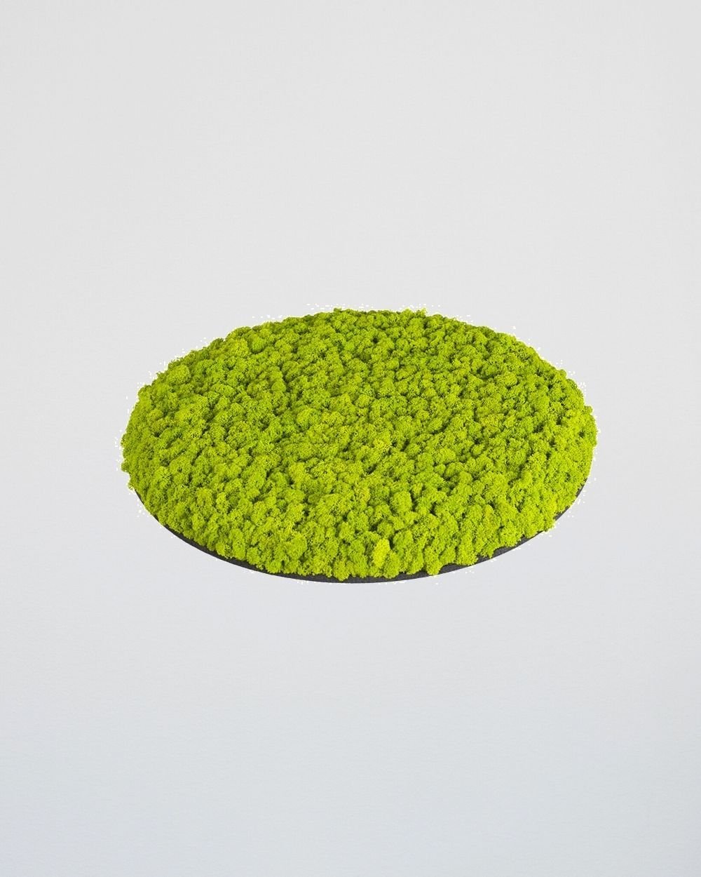 Mosspanel Cirkel – Ljuddämpande väggpanel med äkta finsk renlav. Underhållsfri, dekorativ & enkel att montera. Perfekt för bättre akustik!
